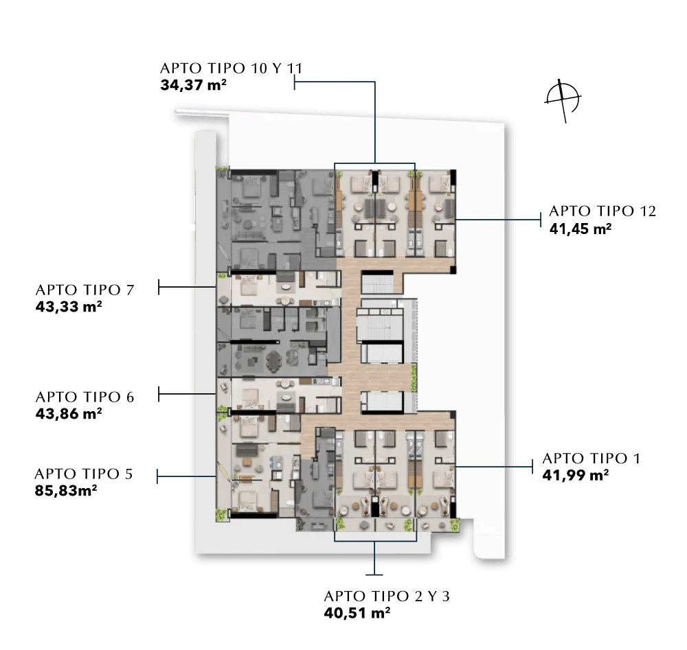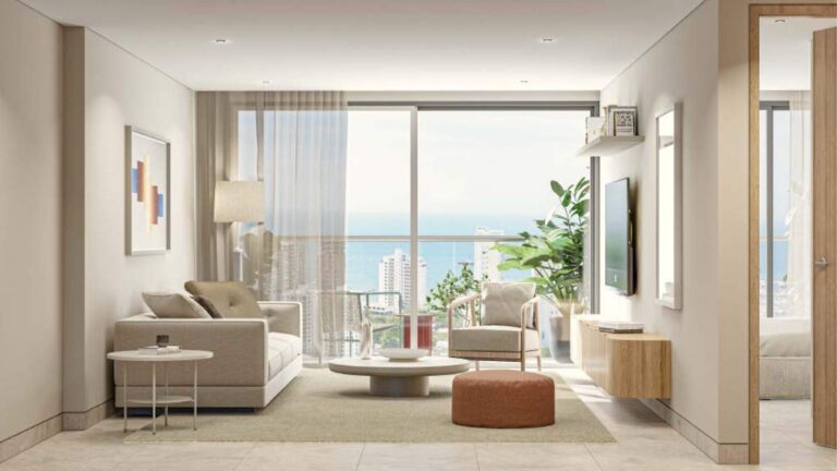 Nuestros apartamentos están diseñados pensando en tu confort y estilo de vida, con apartasuites modernos de una habitación desde 34,37m2 hasta amplios apartamentos de múltiples habitaciones con áreas de hasta 127,97m2, todos contarán con acabados de alta calidad, cada unidad en Bahía Marina ofrece lo mejor en diseño y funcionalidad. Explora nuestras opciones y encuentra el apartamento perfecto para ti.